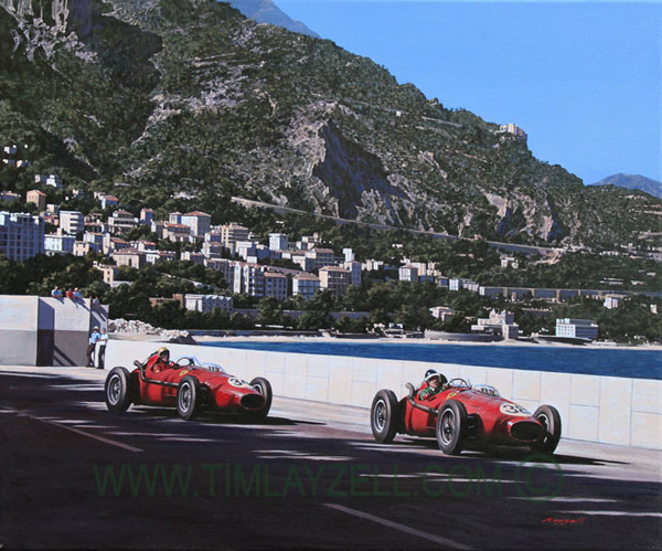 At the beginning of the 1950s, Italian drivers dominated international motor racing – winning three of the first four world championships. By 1958 however, Ascari and Castellotti had both been killed while Farina had retired. Luigi Musso was the last of the breed. The burden of carrying Italy’s racing prestige – as well as escalating gambling debts - weighed heavily on his shoulders. Even at the heart of Italian motor racing – Ferrari – he felt isolated by the camaraderie between team mates Mike Hawthorn and Peter Collins. Here, Musso follows Hawthorn onto the seafront at Monte Carlo. Hawthorn ultimately retired from the lead and Musso finished second to Trintignant’s Cooper. Later in the season Musso was killed at Reims while chasing teammate Hawthorn’s Dino 246 once more. Hawthorn went on to take the first title for a British driver, signaling the start of a decade dominated by Anglo Saxon drivers. No Italian has won the World Championship since 1953…