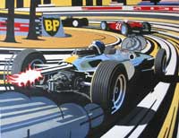 Six stages of development of Flash of Brilliance – depicting Jim Clark at Monaco in 1964.