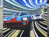 Five stages of development of Pedestrian Victory – depicting the epic battle at Le Mans in 1969 between the Ford GT40 and Porsche 908.